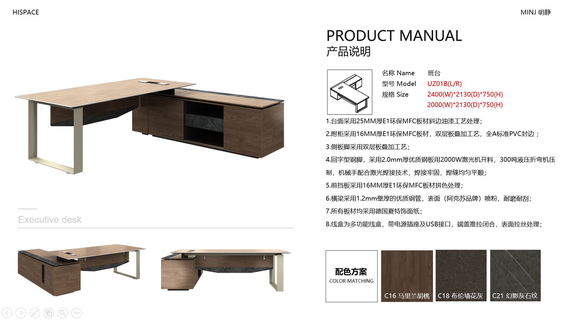 - 回型鋼腳采用板金工藝制作,穩重大氣且不失時尚,搭配加厚造型臺面,整體效果簡約而不簡單!